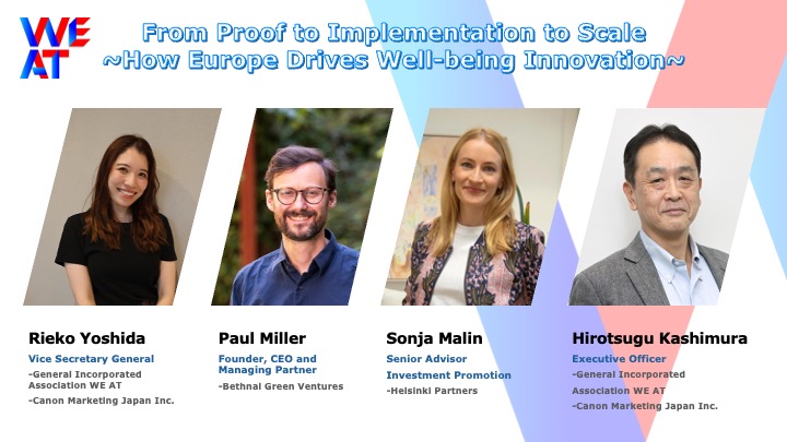 一般社団法人WE AT(以下、WE AT)は、2026年4月27日(月)~29日(水)に東京ビッグサイトで開催されるグローバルカンファレンス「SusHi Tech Tokyo 2026」において、「実証から社会実装、そしてスケールへ:欧州はいかにWell-beingイノベーションを推進するのか」と題したセッションに登壇いたします。